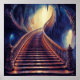 Artwork of a set of stairs spiralling upwards in a cave. This captivating artwork depicts a magnificent, winding staircase leading upwards into a hidden grotto, bathed in a radiant, ethereal light. The dramatic cave walls and intricate details of the staircase evoke a sense of ancient mystery and hopeful ascent. This piece is perfect for inspiring contemplation and a feeling of reaching towards something greater. A sweeping staircase dominates the scene, leading the eye upwards towards a powerful source of light spilling into a large cave. The rich textures and colours create a sense of depth and majesty, making this artwork a powerful statement piece for any room. This piece can be customised, printed, and or downloaded.