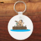 A caveman in a canoe paddling away. This design looks really effective on these Keychain