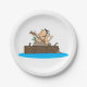 A caveman in a canoe paddling away. This design looks really effective on these Paper Plates
