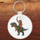Caveman Riding Dinosaur Cartoon Image Key Ring