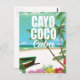 Cayo Coco Cuba retro vacation travel poster, Sandy Cuban beach holiday poster to Cayo Coco.