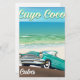 Cayo Coco cuban vintage travel poster of a retro classic automobile.