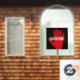 Ceasefire red white black hand bold custom text anti war window cling sign.