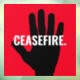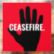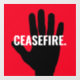 Ceasefire red white black hand bold custom text anti war window cling sign.