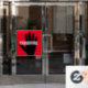 White text, black hand, red background.