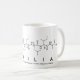 Cecilia spelled out in amino acids as C E C I L I A (Cysteine Glutamic acid Cysteine Isoleucine Leucine Isoleucine Alanine) on a mug for the scientist in you.