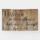 Country Chic Custom Wedding Welcome Banner. Scripted text on cedar fence background. Add names and date.