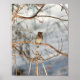 Pretty yellow cedar waxwing bird wintering over resting on a branch against a backdrop of snow poster print. Nature photography by Susan.