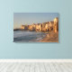 Canvas landscape print of the typical architecture of the old houses built on the beach of the Mediterranean Sea in the town of Cefalu, on the Island of Sicily in Italy. Great decoration on your wall!