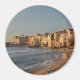 Round photo magnet with the typical architecture of the old houses built on the beach of the Mediterranean Sea in the town of Cefalu, on the Island of Sicily in Italy.