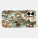 3D Fondant Style Celadon and Gold Flowers and Bumblebees Coquette Girly Classy Elegant iPhone case.