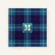 Celadon Blue Plaid Tartan Leather Monogrammed Notebook