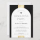Mark your grad's milestone with timeless elegance! This customisable template features a photo under a sleek arch frame, a sophisticated black & gold colour scheme, and room for all the party details. Modern design sets the stage for a memorable celebration. #graduationinvitation #photograduationinvitation