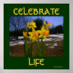 poster w/ daffodils and a partially snowy background...text saying Celebrate life. great for pagan and wiccans who revere nature and celebrate her in all her glory. Good for Ostara .