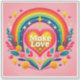 A lively display of vibrant colours and joyful motifs features a heart at the centre, surrounded by a bold rainbow and delicate flowers.