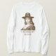 I love this shirt. I had written to the artist asking her if this picture was available on a shirt, and she wrote me back telling me where I could find the shirt. These shirts can be custom made to have a different saying. I loved this saying and went with it. The artist wrote me back later to tell me that she had seen my order go through. How's that for service? Pretty special. It's just as displayed. Perfect!
