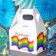This PRIDE THEMED Favour Box features the LGBTQ flag. On the front and back panel the text reads "Celebrate!". The front panel has an area for custom text.