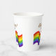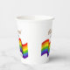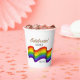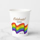 These PRIDE THEMED Paper Cups feature the LGBTQ flag. Above the flag the text reads "Celebrate!" and below that there's an area for custom text.