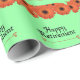 Celebrate retirement: "Happy Retirement," pretty gold-orange daisies on green background, gift wrapping paper.