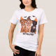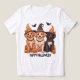 This unique t-shirt features three adorable dogs wearing witch hats, perfectly capturing the Halloween spirit. Adorned with fun pumpkin lanterns and flying bats overhead, the design has a playful yet spooky feel. With a vibrant cartoon style and balanced colours, this shirt is ideal for dog lovers looking to add a little fun to their Halloween wardrobe. Get ready to welcome the season with a howl and some cute ghost friends!