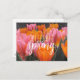 Send a note or greeting to your friend or loved one this spring with this colourful pretty postcard featuring a closeup photograph of pink and orange tulips and the quote "celebrate spring."