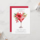 This Christmas cocktail party invitation is the perfect way to invite your friends and family to celebrate the holidays with cocktails. The design features a martini glass with poinsettia flower and holy berries, adding a festive touch to the invitation. The wording "let's celebrate the holidays with cocktails" sets the tone for a fun and festive party.
