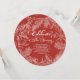 Modern Christmas Party Invitation featuring holly & pine branches die cut circle with a rustic holiday red background. Flip our invitation over to view a matching back for an extra special touch. Perfect for an office party, company party, christmas party, holiday party or new Year's eve party.