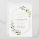 Celebrate With Us! modern greenery wedding party invitation featured rustic watercolor botanical foliage design with real gold foil leaves and geometric frame, simple and elegant, great for summer rustic wedding, spring botanical garden wedding.