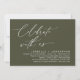 Mark the beginning of your forever with elegance using our romantic contemporary rustic olive green theme wedding elopement happily ever after lunch, brunch, reception dinner party celebration invitation card, "Celebrate with us". Perfect for couples extending their joyous occasion, this invitation exudes sophistication with a hint of playfulness, setting the stage for a memorable event. Adorned with a timeless modern script design theme, it adds a touch of refined charm to your festivities. Crafted by TeeshaDerrick, this invitation promises to beautifully capture your love story.