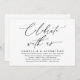 Mark the beginning of your forever with elegance using our romantic modern contemporary black and white theme wedding elopement happily ever after lunch, brunch, reception dinner party celebration invitation card, "Celebrate with us". Perfect for couples extending their joyous occasion, this invitation exudes sophistication with a hint of playfulness, setting the stage for a memorable event. Adorned with a timeless modern script design theme, it adds a touch of refined charm to your festivities. Crafted by TeeshaDerrick, this invitation promises to beautifully capture your love story.