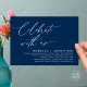 Mark the beginning of your forever with elegance using our romantic contemporary classy navy blue theme wedding elopement happily ever after lunch, brunch, reception dinner party celebration invitation card, "Celebrate with us". Perfect for couples extending their joyous occasion, this invitation exudes sophistication with a hint of playfulness, setting the stage for a memorable event. Adorned with a timeless modern script design theme, it adds a touch of refined charm to your festivities. Crafted by TeeshaDerrick, this invitation promises to beautifully capture your love story.