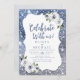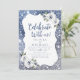 Faux sparkle silver and blue glitter frame and "Celebrate With Us! " script with dusty blue and white floral, elegant and stylish. Great for romantic wedding party, engagement party, vow renewal party, or other celebrate events.