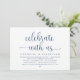 Modern Navy Blue Script themed, wedding elopement invitation card (celebrate with us). It is perfect for your wedding elopement reception / post wedding celebration party. Add your details in matching black font / lettering.