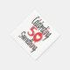 Napkin for a 50 something birthday party. large black and red letters "Celebrating 50 Something" on a white napkin.