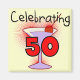 50th Birthday T-shirts, tank tops, hoodies, mugs, cards, stickers, magnets, 50th birthday buttons, keychains, and other 50th birthday apparel and gifts with a colourful Celebrate 50 cocktail design.