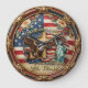 This magnificent round wall clock is a grand tribute to American history, featuring a rich 3D-style collage of iconic national symbols. The central design includes a soaring bald eagle, the Statue of Liberty, the Liberty Bell, and a golden cross, all layered over a vibrant American flag. Elegant golden text arches across the face reading "CELEBRATING AMERICA," while the bottom commemorates the historic milestone with "1776 – 2026" and "250 YEARS." The clock is bordered by an ornate, baroque-style golden frame adorned with delicate floral accents and patriotic red flowers. This functional piece of home decor is a prestigious gift for collectors, veterans, and patriots alike, perfect for honoring the United States semiquincentennial. Its intricate sculptural detail and classic color palette make it a sophisticated and meaningful focal point for any home or office gallery wall.