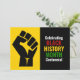 Motivational BLACK HISTORY MONTH CENTENNIAL flat card showing black raised fist graphic against a rich yellow background on the left, and CELEBRATING BLACK HISTORY MONTH CENTENNIAL in bold white, red, yellow, green typography set against a rich black background on the right. On the reverse there is a CUSTOMIZABLE greeting which you can personalize with your own wording. A great way to keep in touch over the Black History Month season—especially during this landmark centenary year. Other varieties of BHM cards, invitations, clothing and decor are available.