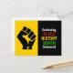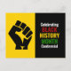 Motivational BLACK HISTORY MONTH CENTENNIAL postcard showing black raised fist graphic against a rich yellow background on the left, and CELEBRATING BLACK HISTORY MONTH CENTENNIAL in bold white, red, yellow, green typography set against a rich black background on the right. On the reverse there is a CUSTOMIZABLE greeting which you can personalize with your own wording. A great way to keep in touch over the Black History Month season—especially during this landmark centenary year. Other varieties of BHM cards, invitations, clothing and decor are available.