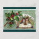 Vintage image of two kitties at a fancy dinner table on New Years Eve. Holly borders the edge of card.