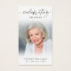 This personalized Celebration of Life prayer card offers a gentle and uplifting way to honor a loved one’s memory. The front features a soft photo portrait paired with elegant script typography reading “Celebrating the Life of,” while the reverse showcases a tranquil beach shoreline background with an editable comforting remembrance message. Thoughtfully designed to reflect peace, love and remembrance, this custom photo card serves as a meaningful keepsake for family and friends at a funeral, memorial service or Celebration of Life, offering comfort long after the service has ended. Its small and portable size of 3.5x2" (wallet-sized) makes it convenient to carry as a reminder of their life and spirit. Personalization makes each card unique.