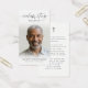 Celebrate the memory of your loved one with this custom personalized prayer card featuring one cherished photo, the title CELEBRATING THE LIFE OF, name and dates on the front and an editable prayer you can change to a heartfelt remembrance message, meaningful poem or saying accented with a simple cross on the back. With its simple yet elegant classic black and white design and modern handwritten script typography, it makes a meaningful keepsake to share at a Celebration of Life, funeral, memorial service, visitation or wake and offers comfort and a lasting photo tribute for family and friends. Its small and portable size of 3.5x2" (wallet-sized) makes it convenient for loved ones to carry it with them as a reminder of your loved one’s life and spirit. Personalization makes each card unique.