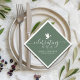 Personalise this simple napkin with the name and of dates of your loved one. Design features stylish black script "Celebrating the life of", white dove with custom text on a stylish sage green background. Perfect for your funeral memorial reception. Easy to customise. Our heartfelt condolence during this difficult time.