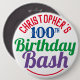 To celebrate a special birthday. Designed for someone who is 100 years of age. 100th birthday celebration. Birthday bash. Add the name and number. Birthday party button badge.