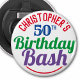 To celebrate a special birthday. Designed for someone who is 50 years of age. 50th birthday celebration. Birthday bash. Add the name and number. Birthday party souvenir button bottle opener.