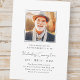 The Celebrate His Wonderful Life Modern Memorial Photo Invitation is a tastefully designed and highly customisable card that allows you to invite friends and family to honour the memory of a cherished loved one. With a focus on simplicity, elegance, and personalisation, this invitation serves as a fitting way to gather loved ones together to celebrate a life well-lived.