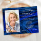 Modern Blue Marble Memorial Funeral / Celebration Of Life Invitation. These sympathy funeral invitations feature a photo on a modern lapis blue agate marble design. Personalise this celebration of life funeral invitation with your loved ones photos, name & dates, event details. This celebration of life invitation is perfect for memorial services and funeral invitations. COPYRIGHT © 2021 Judy Burrows, Black Dog Art - All Rights Reserved. Celebration Of Life Blue Marble Memorial Funeral Invitation Postcard