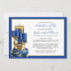 This elegant celebration of life invitation features three royal blue and gold candles with floral accents in a gold and white frame. Easy to customise with your personal text by clicking "Personalise".