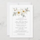 Elegant celebration of a life invitation features a spray of white flowers and dust blue leaves at the top. The deceased person's name is written in a traditional script text. All of the text can be easily edited to create a personal remembrance.