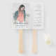 Modern, minimalist photo order of service funeral program hand fan to celebrate the life of your loved one in a minimalist clean simple design style featuring a handwritten script font and a soft dove grey background. The program can easily be personalised with your own photo and text to create a special tribute for your loved one's funeral, memorial or celebration of life. The image shown is for illustration purposes only to be replaced with your own photo. The placeholder image shows a young woman with long wavy brown ombre hair wearing a leather jacket, orange lace top and white jeans.#funeral #orderofservice #handfan