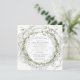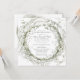 Elegant celebration of a life square invitation features a botanical frame of delicate green leaves. The deceased person's name is written in a traditional script text. All of the text can be easily edited to create a personal remembrance. Their picture is placed on the back.